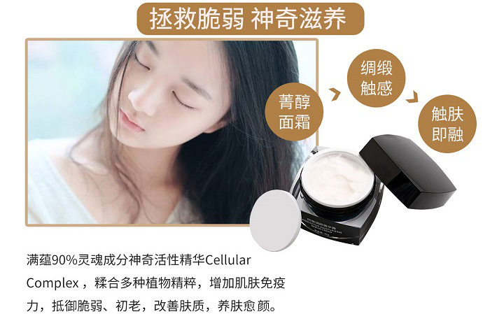 “滋”深专家“养”肤愈颜! 为肌肤补充多种营养,及时帮助对抗肌肤干燥问题,带给肌肤深层润泽滋养,紧致饱满,强力改善干燥,粗糙、脱屑等缺水导致的肌肤问题。是减淡.斑点的修护滋养面霜。