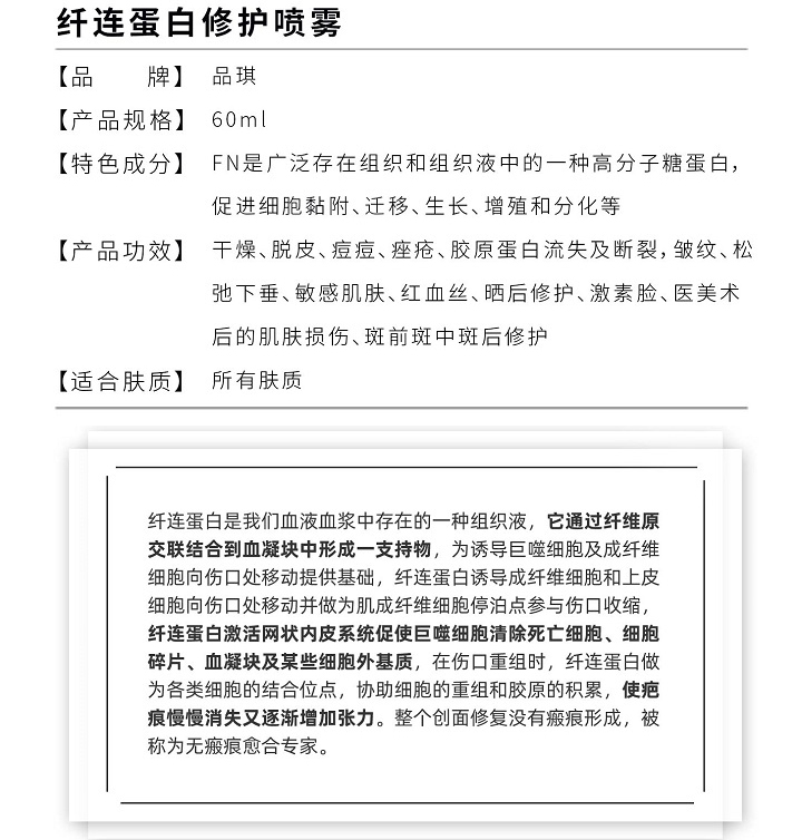 品琪 纤连蛋白修护喷雾60ml(赋原喷雾)修复各类问题肌肤