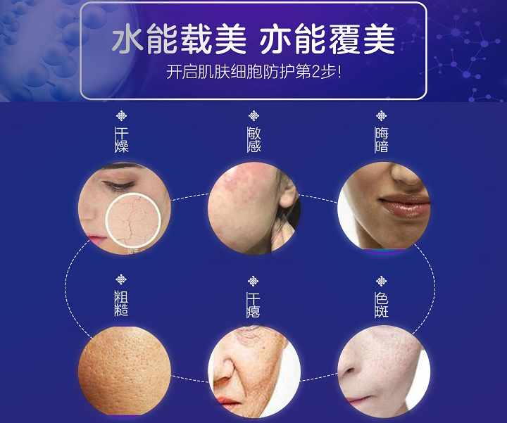 植物萃取精华唤醒鲜活肌肤,高活性褪黄祛黑成分层层焕靓肌肤,抗击氧化,令肌肤莹润靓透,由内而外散发光彩