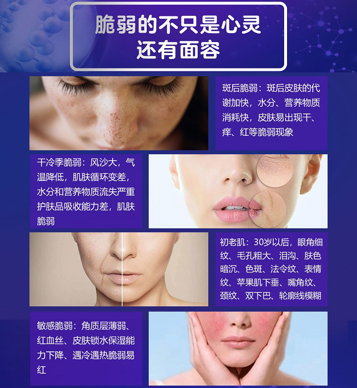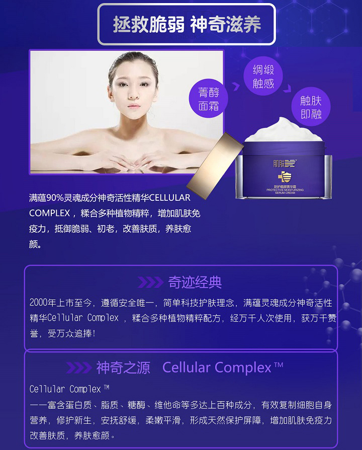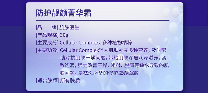 “滋”深专家“养”肤愈颜! 为肌肤补充多种营养,及时帮助对抗肌肤干燥问题,带给肌肤深层润泽滋养,紧致饱满,强力改善干燥,粗糙、脱屑等缺水导致的肌肤问题。是减淡.斑点的修护滋养面霜。
