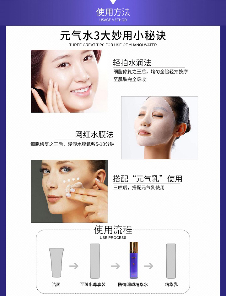 状态不好,来点元气水! 澄清柔滑的精华液质地,快速渗透肌肤直达肌底,让肌肤最初年轻态,重塑肌肤良好平衡状态,让肌肤自然而然恢复健康美肌。