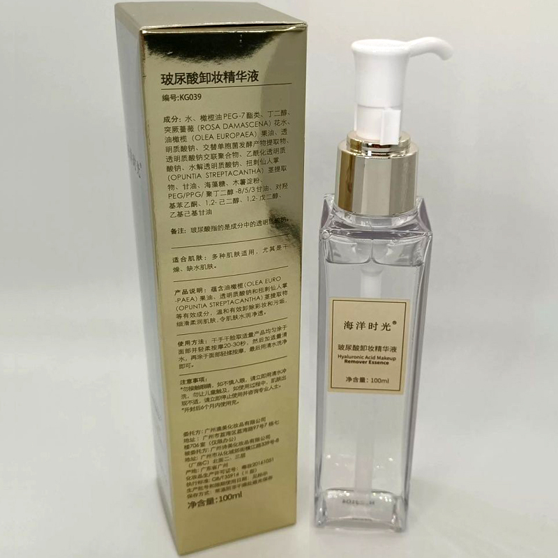 origisea海洋时光 玻尿酸卸妆精华液100ml 产品功效:蕴含油橄榄果油、透明质酸钠和扭刺仙人掌茎提取物等有效成分,温和有效卸除彩妆和污垢,细滑柔润肌肤,令肌肤水润净透。 产品描述:1.温和卸妆、易冲洗2.集卸妆、柔润、养护为一体的卸妆产品 使用方法:干手干脸取适量产品均匀涂于面部并轻柔按摩20-30秒,然后加适量清水,再涂于面部轻揉按摩,最后用清水洗净即可。 适用肌肤:多种肌肤适用,尤其是干燥、缺水肌肤。 增效建议:玫瑰花水、氨基酸洁面膏。