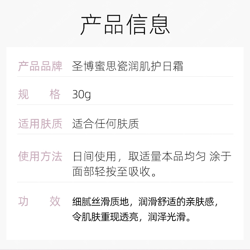 圣博蜜思 瓷润肌护日霜30g 净化肌肤、减少色素沉着、提亮肤色、通透亮白、润泽光滑