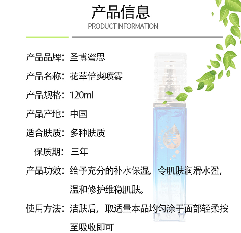 圣博蜜思 花萃倍爽喷雾120ml 补水保湿、润滑水盈、修护维稳、舒缓红敏肌、提高肌肤防御力