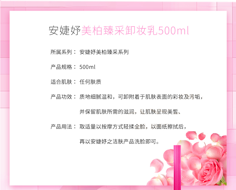 产品功能:质地细腻温和,可卸除附于肌肤表面的彩妆和污垢,并保留肌肤所需的滋润.让肌肤呈现美皙、水嫩的净透光彩。