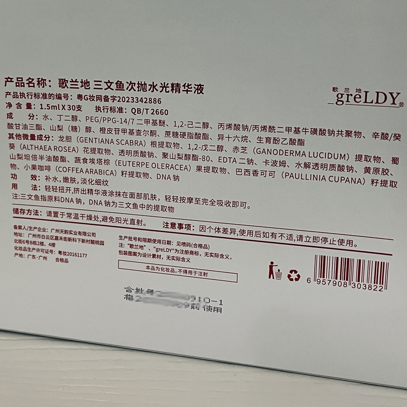 歌兰地 三文鱼次抛水光精华液30支 补水嫩肤、淡化细纹