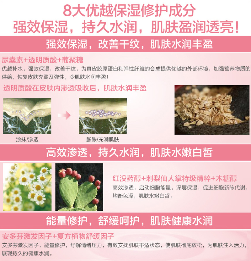 适用肤质:适合任何肌肤,尤其脆弱缺水敏弱性肌肤