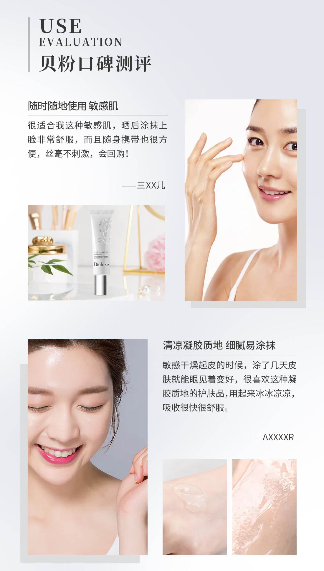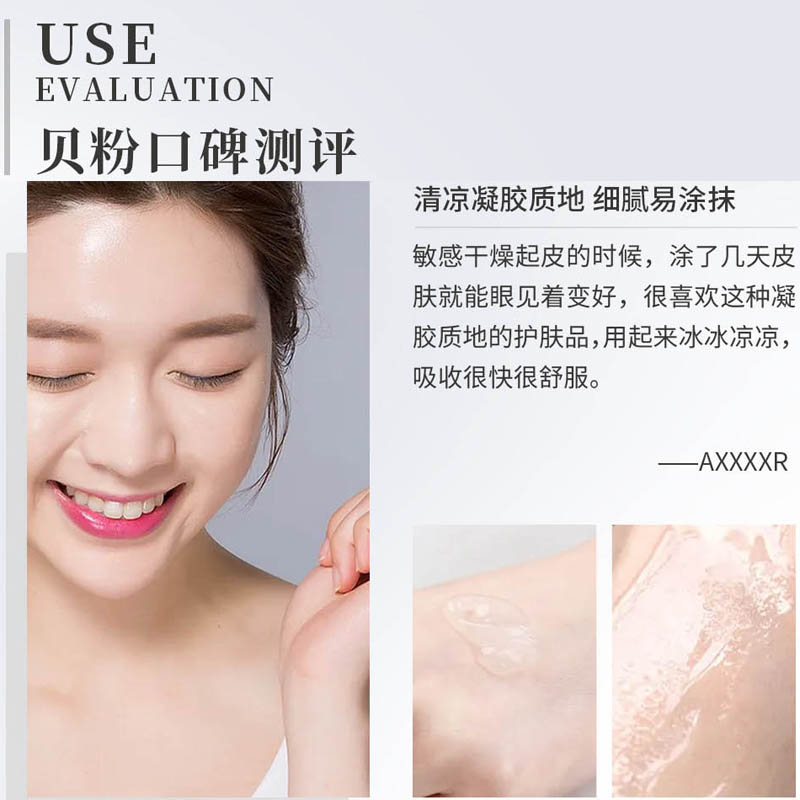 多种修复精华和维生素润泽系统接触肌肤后即变为水状渗透,肤质马上变得平滑,晒前晒后均可使用;修复肌肤;防止迟发性皮肤变黑,令皮肤健康莹润