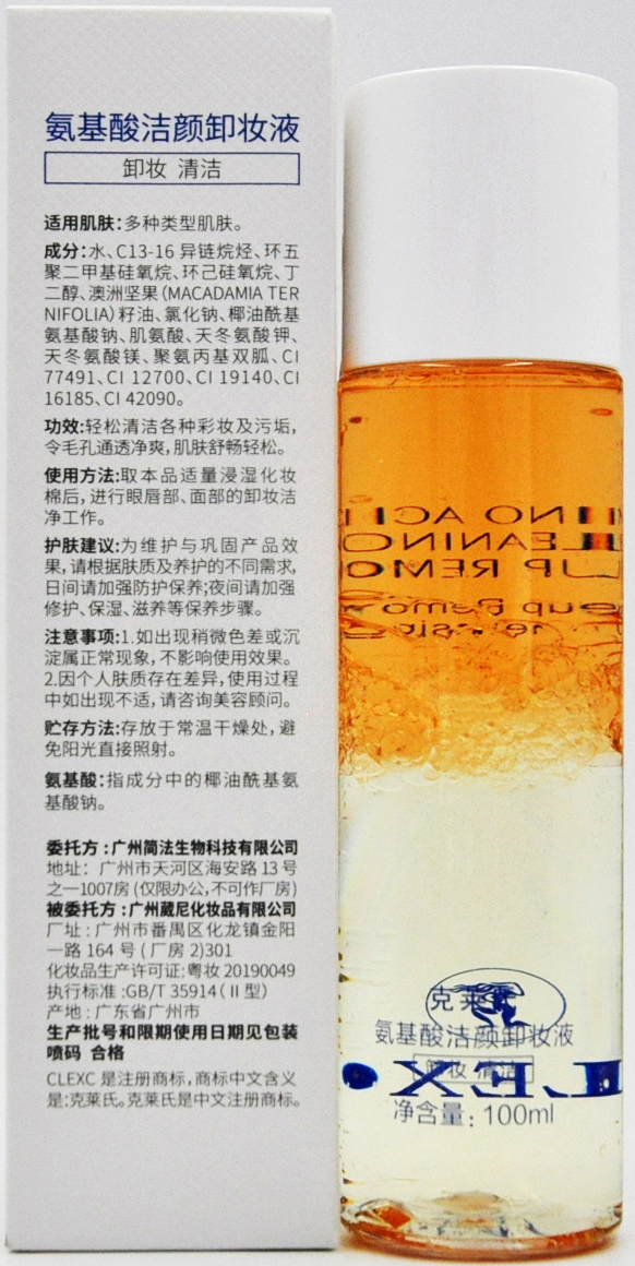 克莱氏 氨基酸洁颜卸妆液100ml 卸除油溶性彩妆污垢,疏通毛孔,舒畅轻松