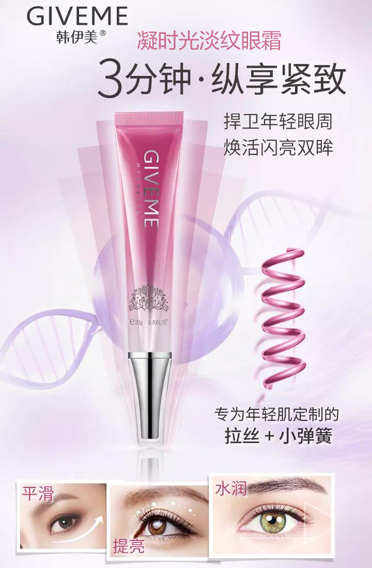 1.轻薄水润:轻薄细腻,水水的润润的,一次解决眼部肌肤干燥缺水问题。2.明眸焕采:促动眼部微循环,改善眼部皮肤的充血和淤堵,明亮眼周皮肤,去除熊猫眼。3.缓解疲劳:缓解熬夜、用眼过度等,双眸神采飞扬。4.平纹抗皱:放松面部肌肉,减少表情纹,从而淡化皱纹。