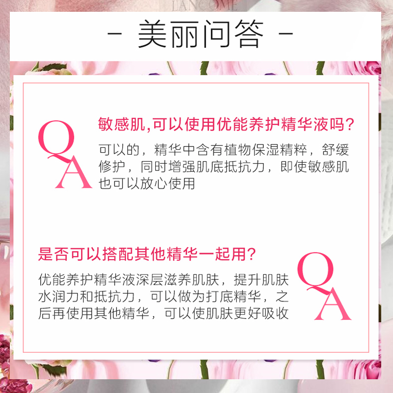 答:优能养护精华是既可以全脸使用,也可以局部使用,能有效改善肌肤因严重缺水而致的疼痛,红,肿现象,让肌肤彻底放松,恢复活力,重新嫩白。