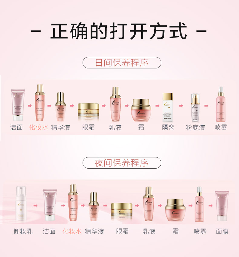 产品用法:早晚洗净肌肤后,用手指或化妆棉轻拍于面部。