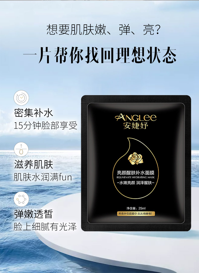 安婕妤 亮颜醒肤补水面膜 25ml*8片 水嫩亮颜 润泽醒肤