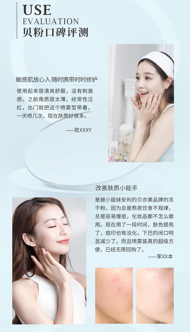 适用于各种肤质,尤其是问题性肌肤(如:晒后修复、肤色不均、纹刺、红血丝等)。