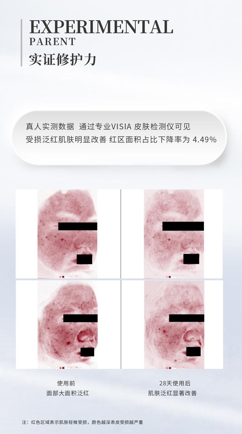 适用范围:适于各种肤质,尤其是问题性肌肤(如:晒后修复、肤色不均、纹刺、红血丝等)。