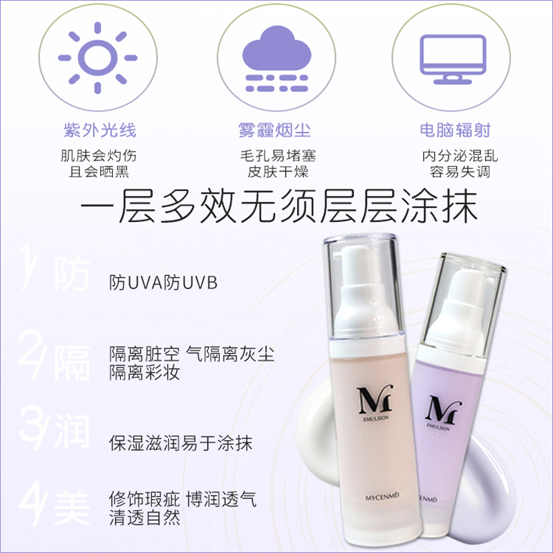 1.防:防UVA防UVB。2.隔:隔离脏空气,隔离灰尘,隔离彩妆。3.润:保湿滋润易于涂抹。4.美:修饰瑕疵,博润透气,清透自然