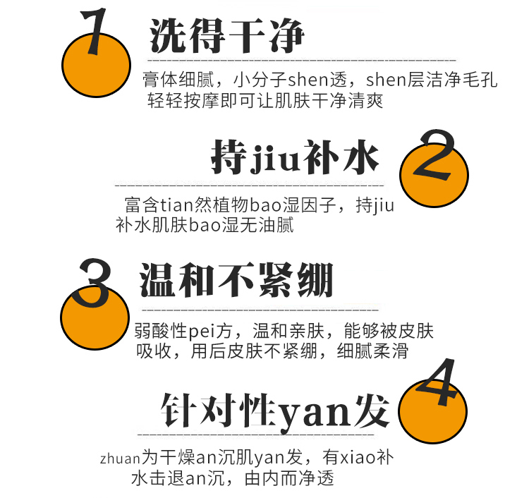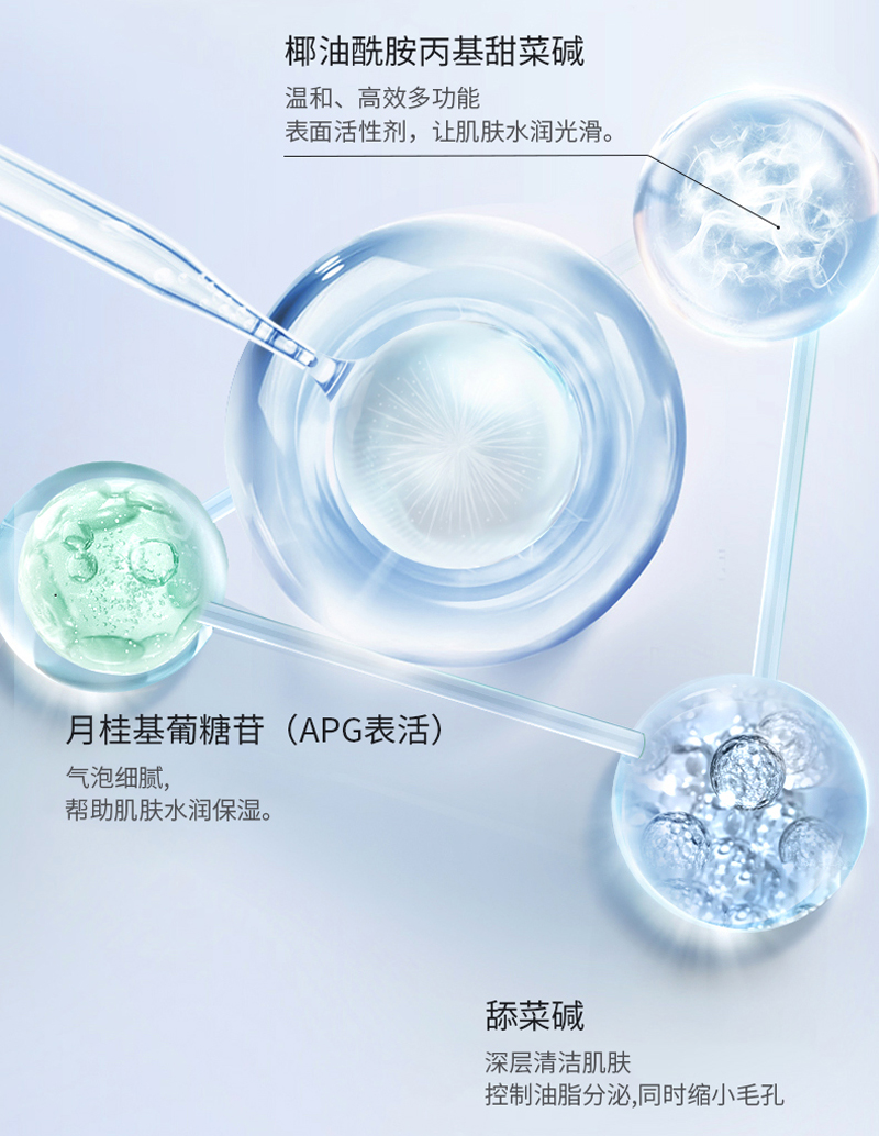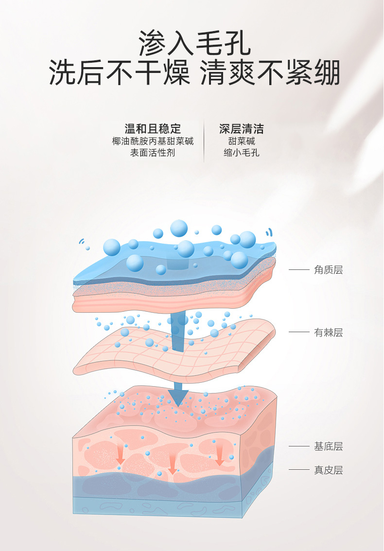 产品功效:泡沫细腻,质地温和,能有效去除肌肤各种污垢,洗后不干燥、不紧绷,肌肤水润舒适。