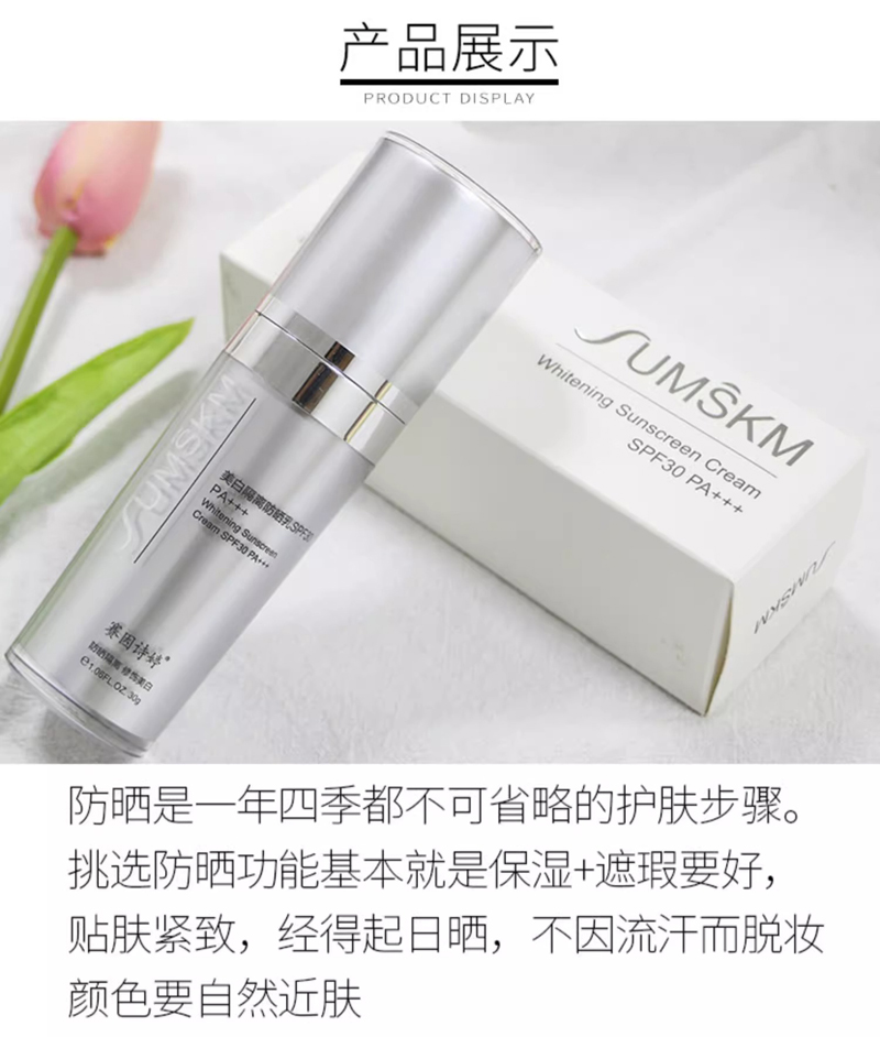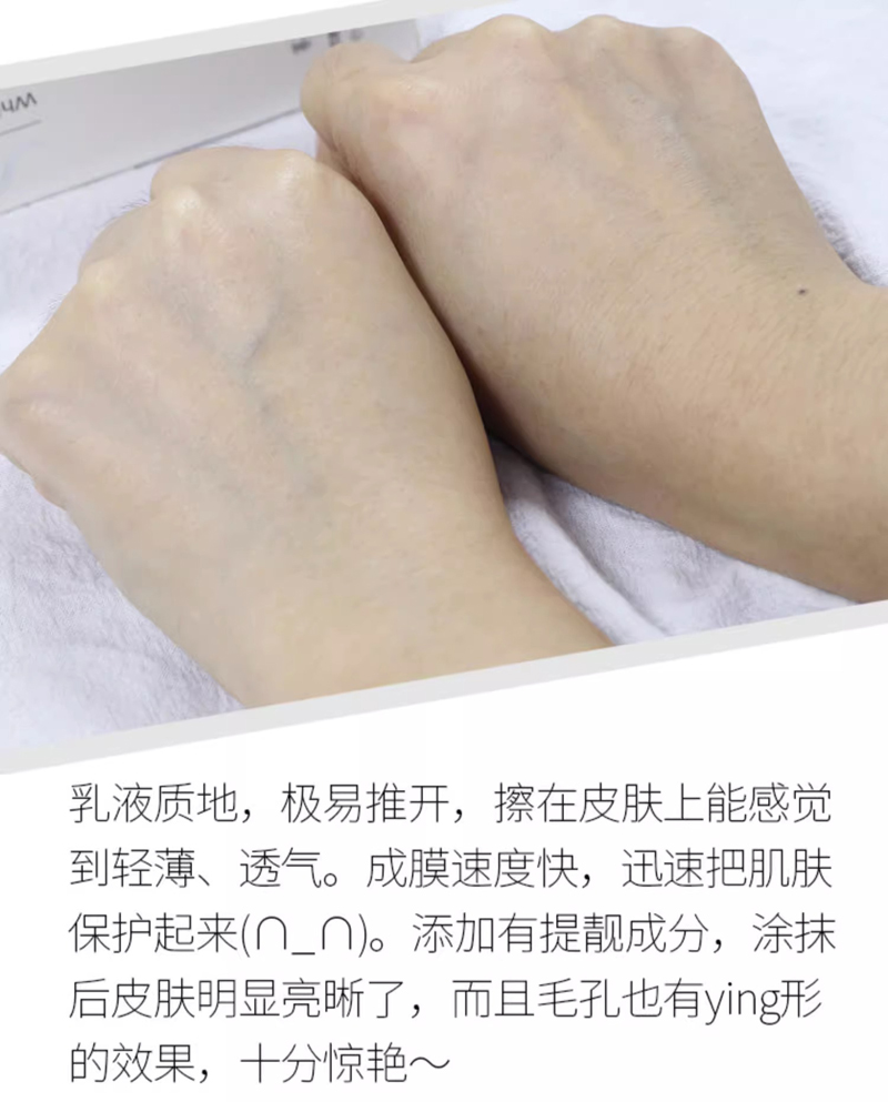 产品功效:有抵御紫外线UVA和UVB,保护皮肤免受日晒的伤害,避免日晒斑和黑色素的形成。同时可修饰肌肤瑕疵,令肤色自然白皙、均匀、细嫩。