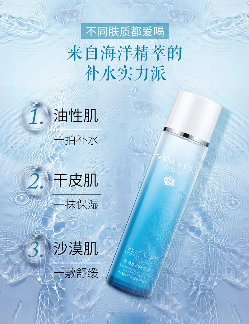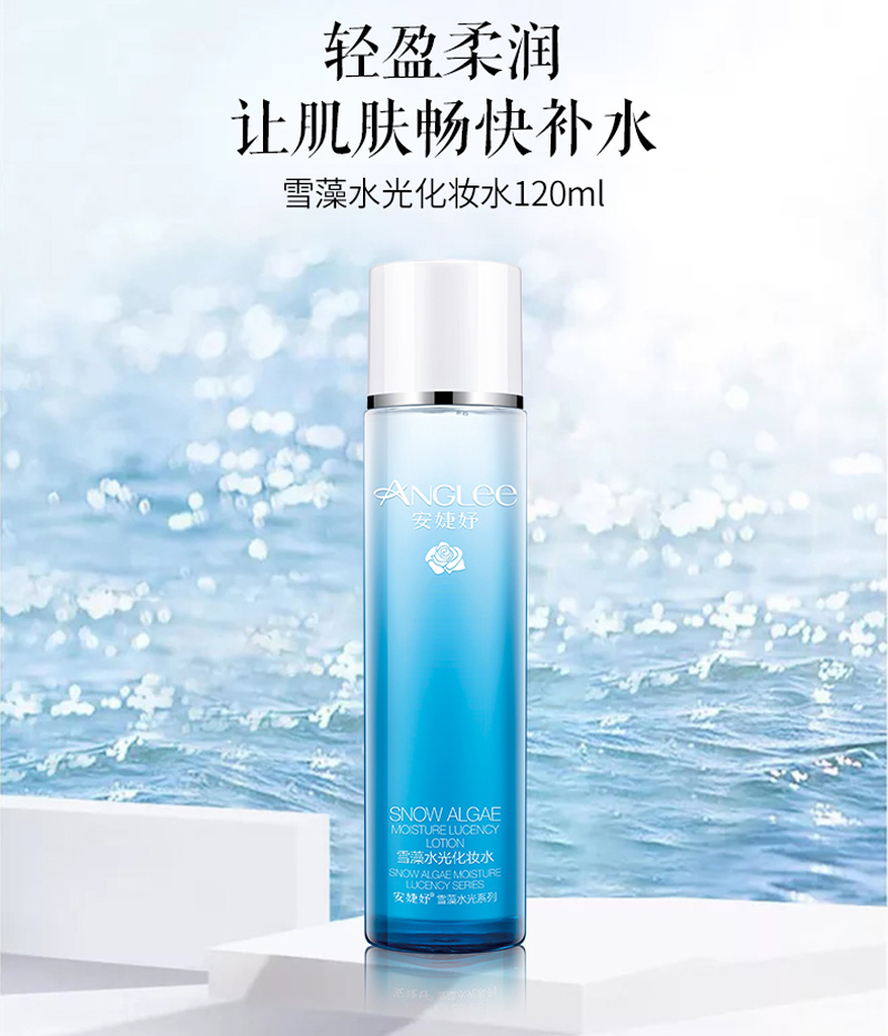 • 商品名称:安婕妤 雪藻水光化妆水120ml 清透保湿、水嫩滢润、平衡水油、舒缓干燥、改善粗糙、温和饱满