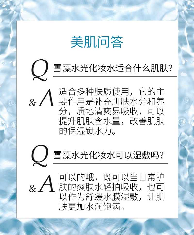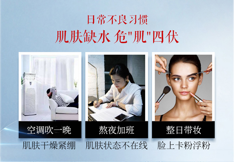 适合肤质:针对皮肤干燥缺水、肌肤不适、敏弱之人群。
