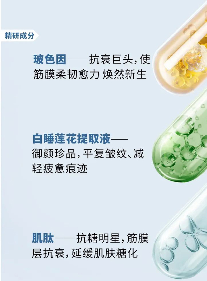 丰富营养有改善肌肤,改善皮肤弹性减少和预防皱纹,使肌肤长期光滑有弹性,能净化和改善皮肤环境,使皮肤变得年轻 光滑、有弹性