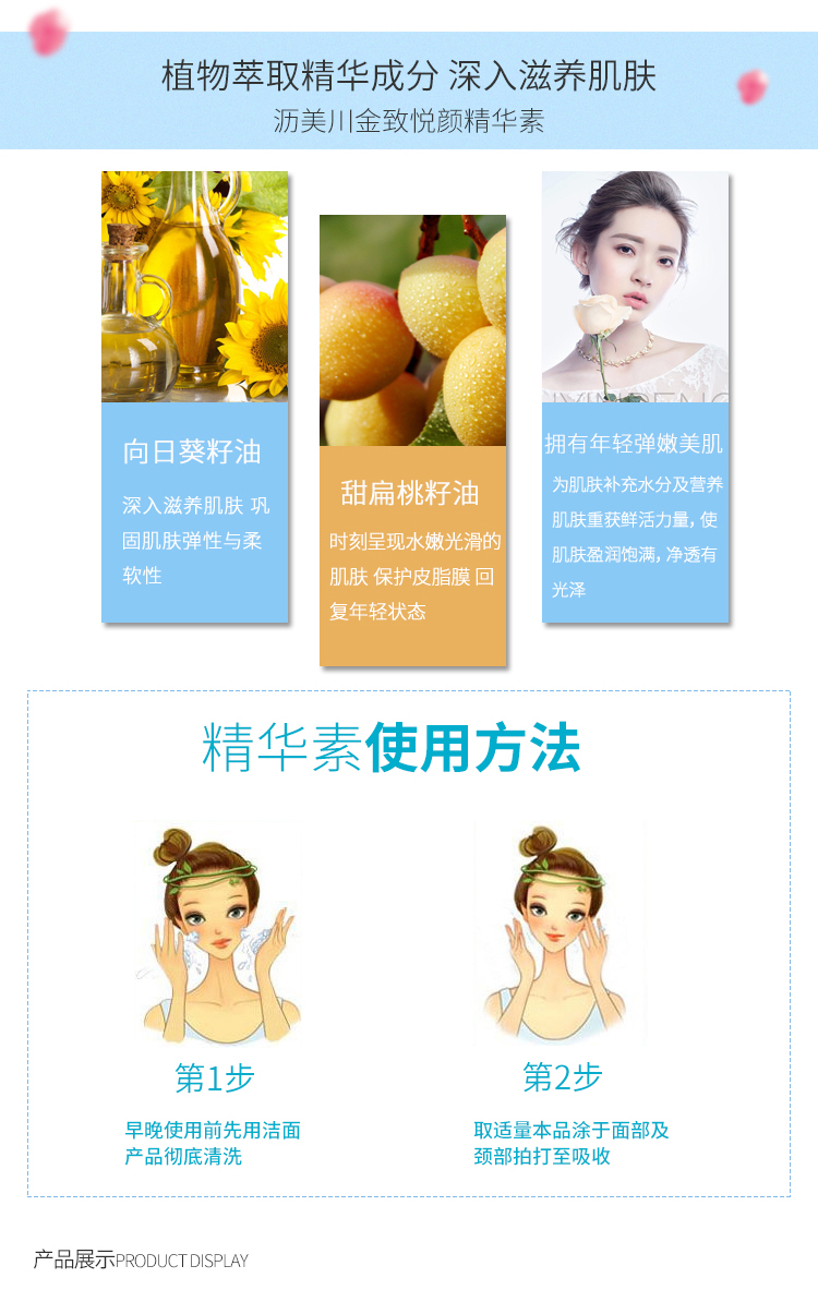 • 商品名称:沥美川 菁致悦颜精华油30ml(金致悦颜精华素)深层滋养、水嫩光滑、紧致弹性、减淡皱纹、提亮肤色、细滑柔嫩