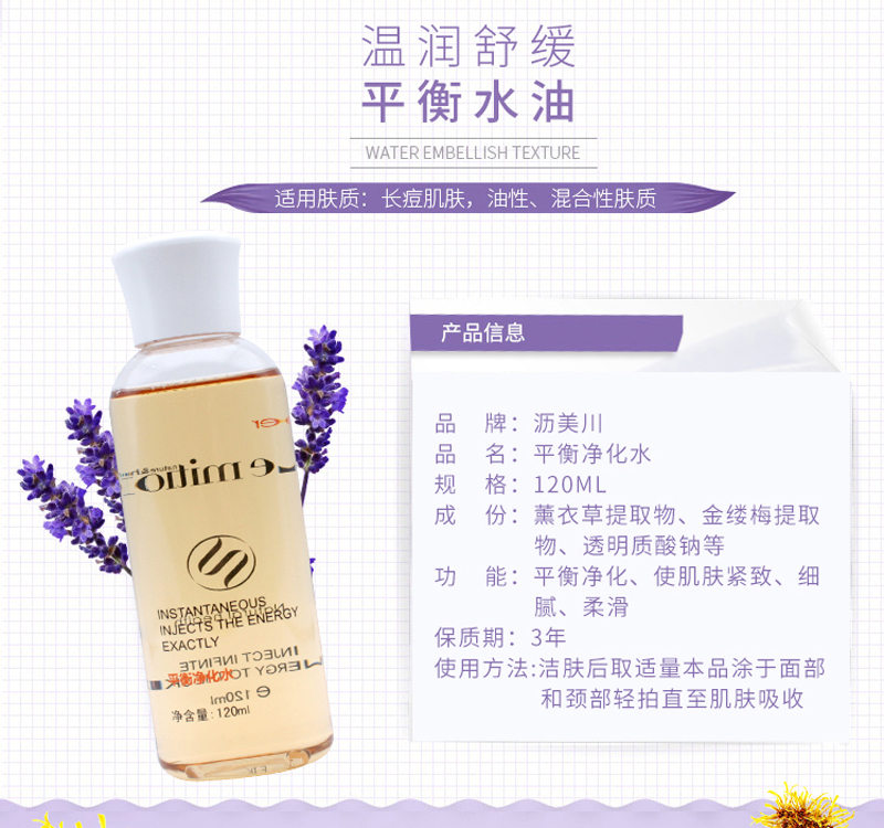 • 商品名称:沥美川 平衡净化水120ml 平衡水油、收敛毛孔、令毛孔代谢舒畅、水润透亮、使肌肤紧致/细腻/柔滑
