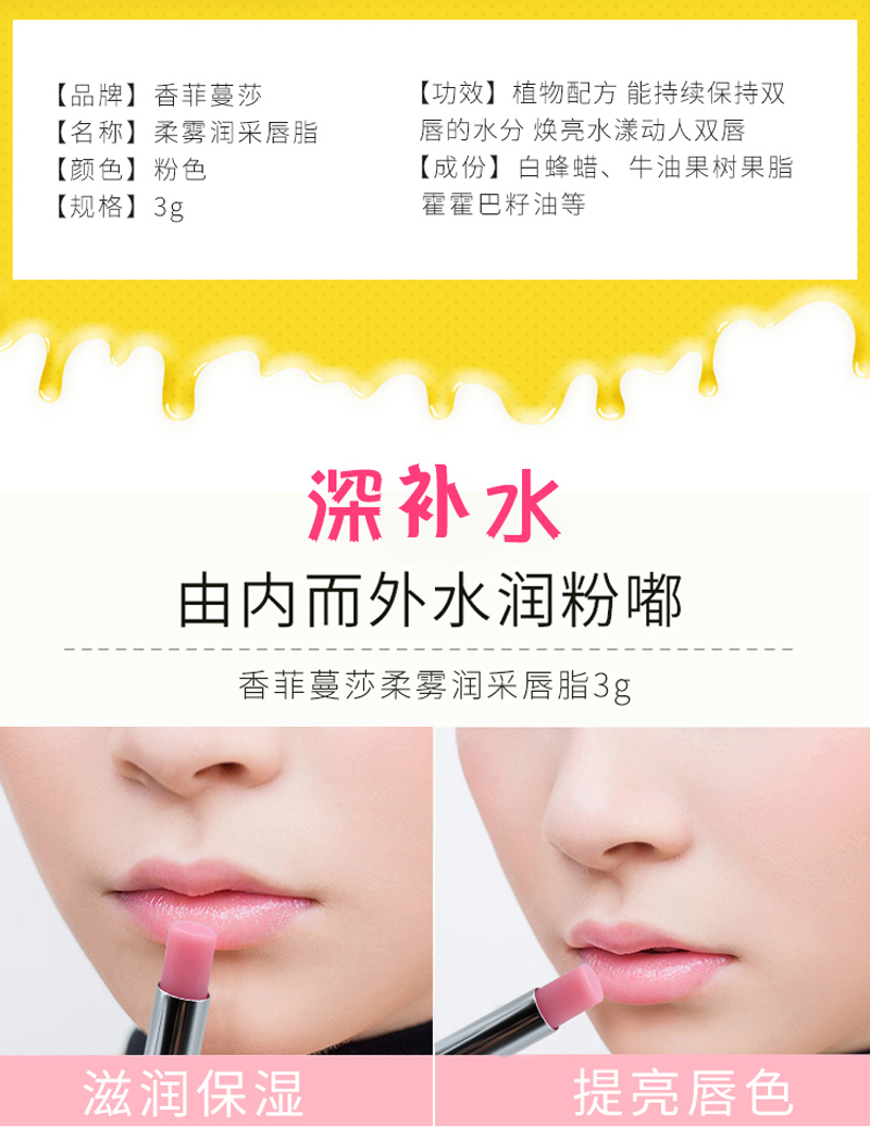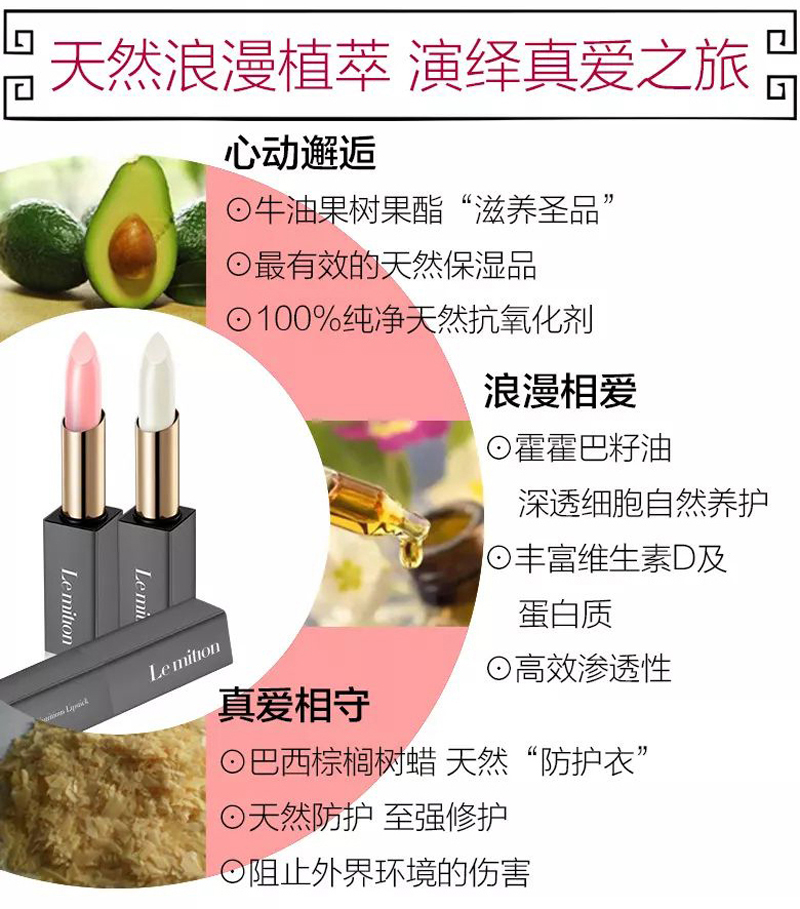 植物配方,能持续的保持双唇的水分,焕亮水漾动人双唇。