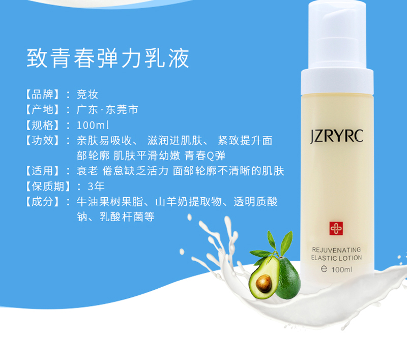 • 商品名称:竞妆 致青春弹力乳液100ml 淡纹抗皱、紧致轮廓、弹润饱满、平衡幼嫩、滋润肌肤、青春Q弹