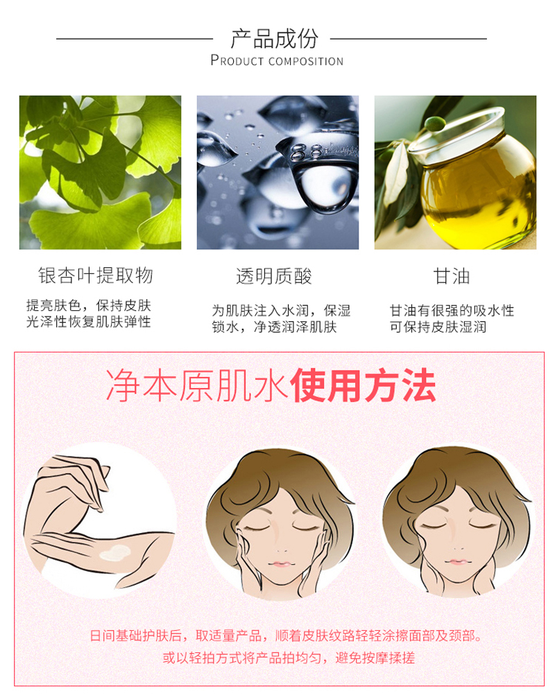 • 商品名称:竞妆 净本原肌水120ml 净润清新、细腻亮泽、改善干燥/油性/暗疮/粉刺/脆弱肌肤