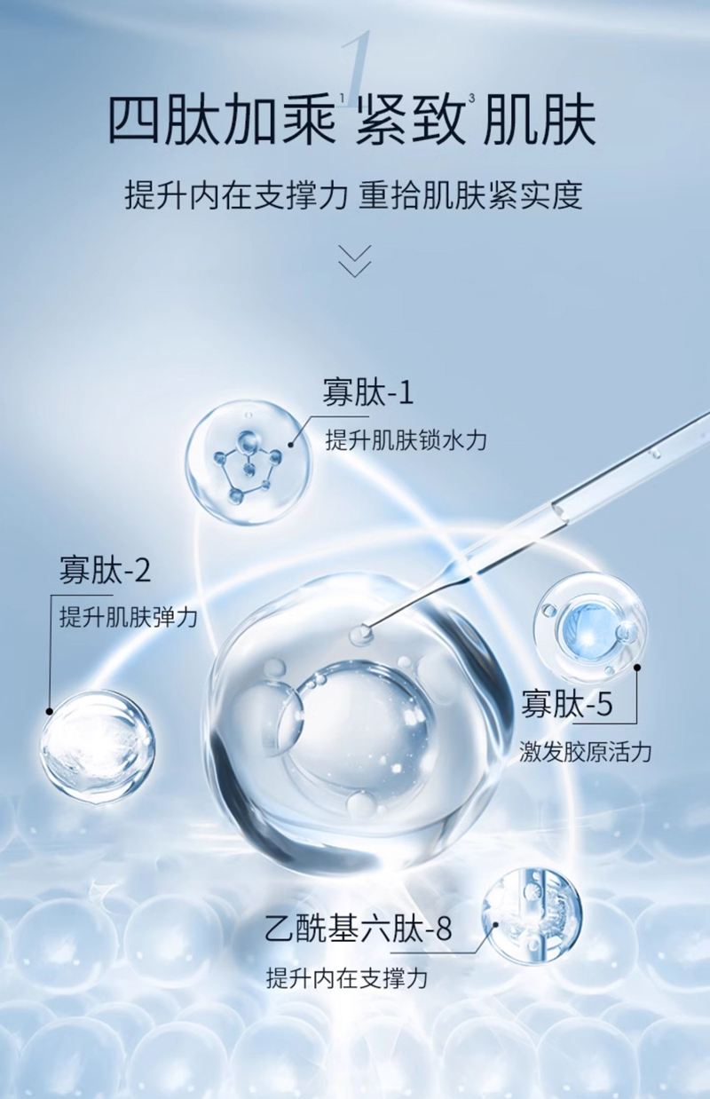 优选菊粉和a葡聚糖寡糖,令皮肤表面水润。甄选4D透明质酸,为肌肤补充水分,增强肌肤含水量,让肌肤水润光泽