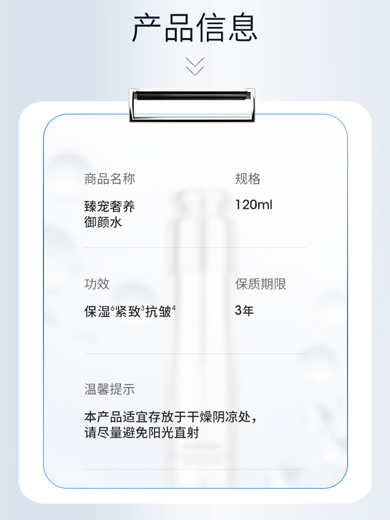 • 商品名称:朗斯 臻宠奢养御颜水120ml 调理肤质,修复屏障,水油同补,紧致抗皱,细腻弹润
