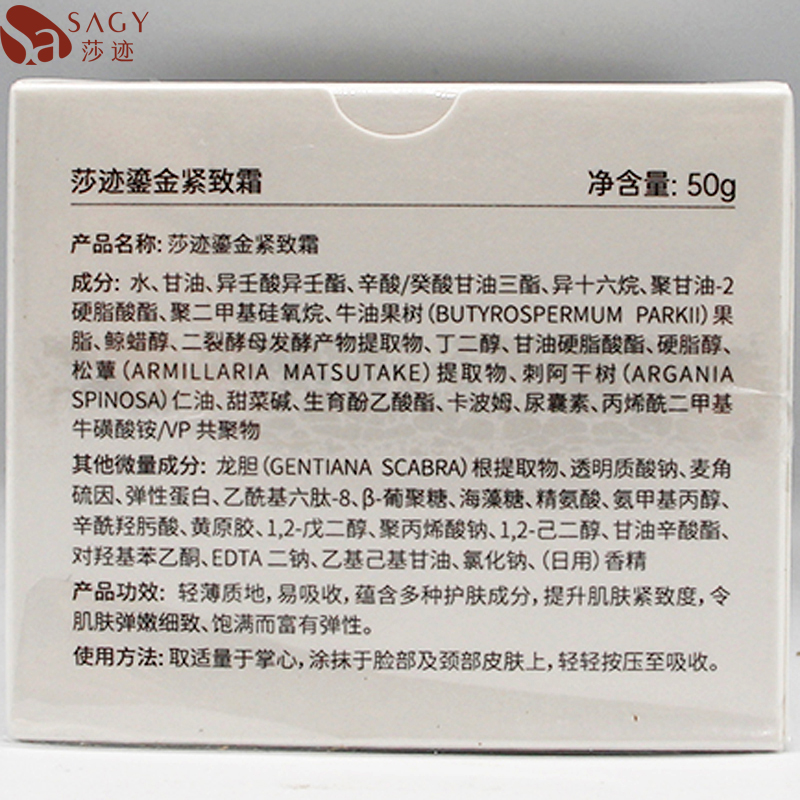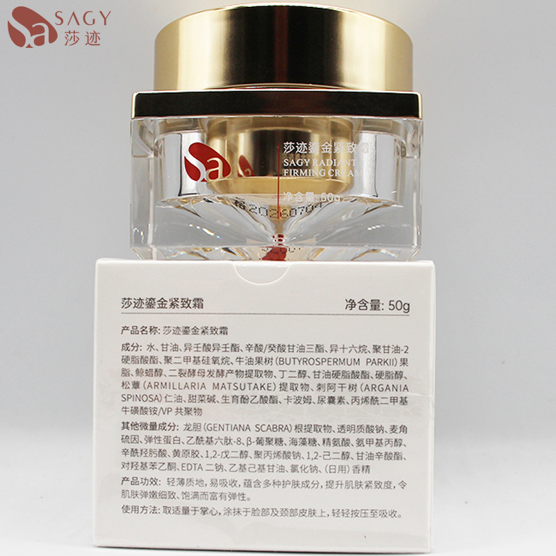 • 商品名称:莎迹 鎏金紧致霜50g 质地轻薄易吸收、饱满弹润、淡化纹路、深透滋养、抗皱紧致、改善干纹/细纹肌肤