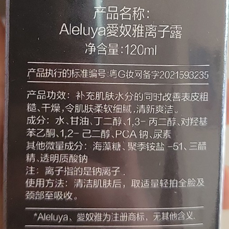 • 商品名称:爱奴雅 离子露120ml 补水百搭、柔软细腻、清新爽洁、改善粗糙/干燥皮肤
