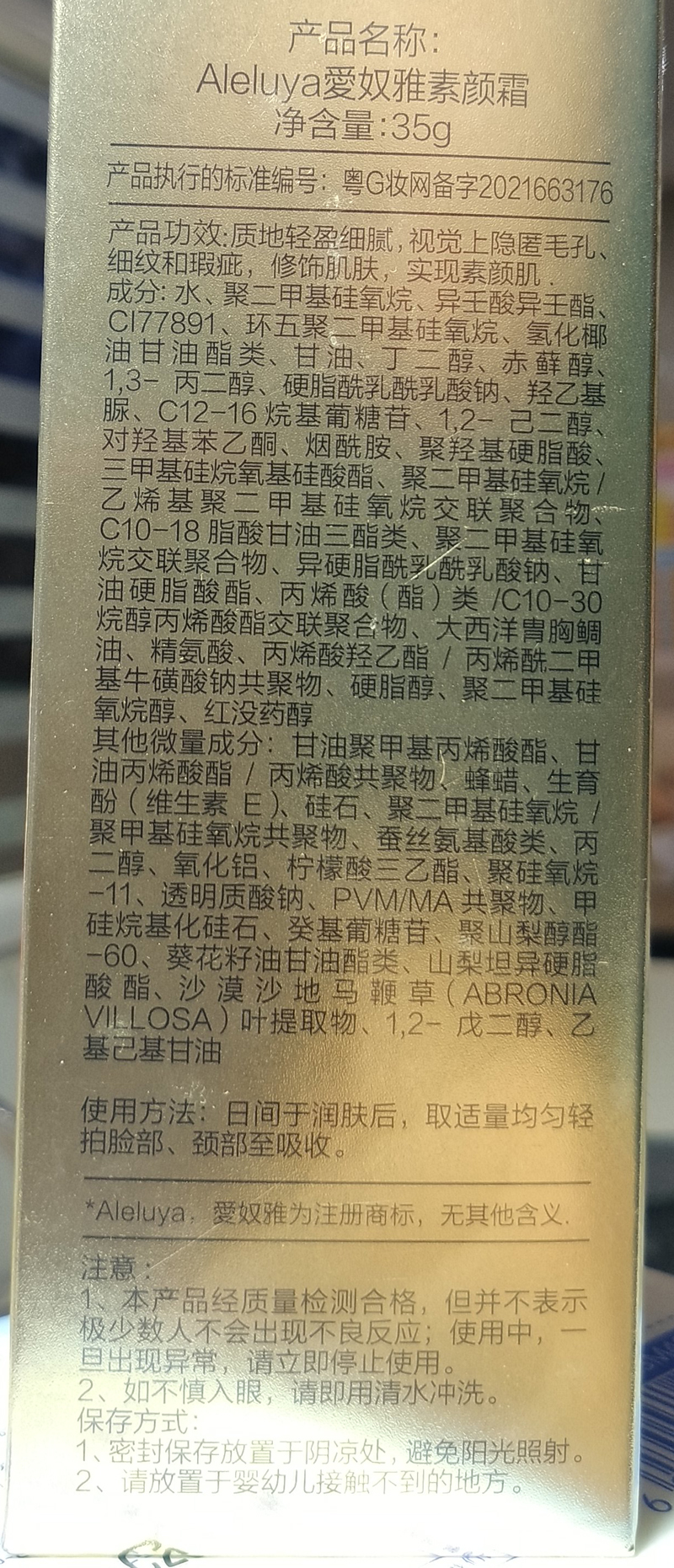 • 商品名称:爱奴雅 素颜霜35ml(盈润隔离霜)隔离紫外线、抗辐射、修饰肤色、隐匿毛孔/细纹/瑕疵