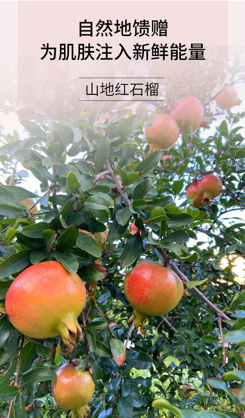 蕴含石榴果提取物,给予肌肤清新、水嫩肤感