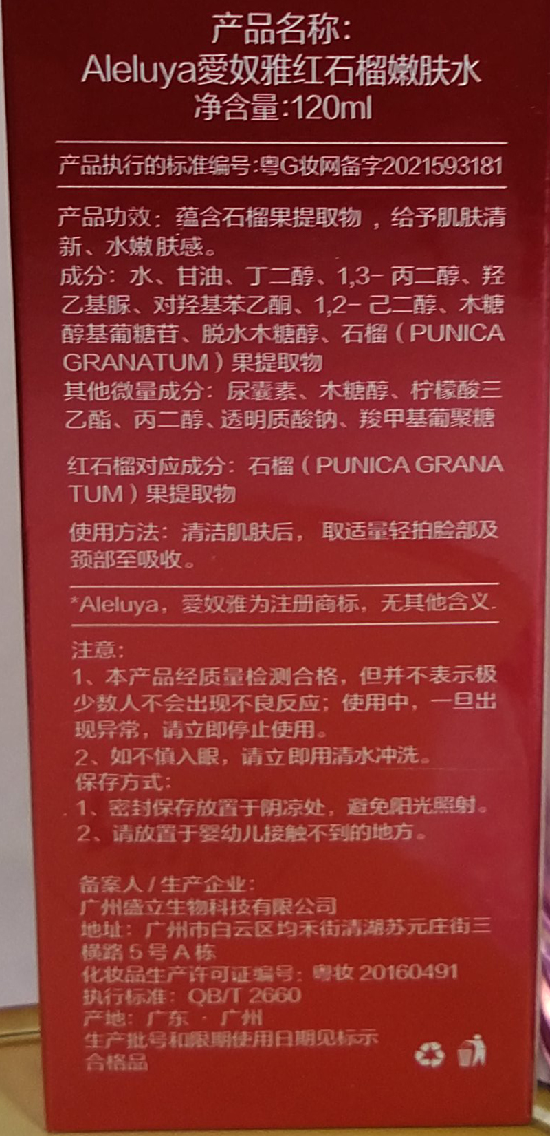 • 商品名称:爱奴雅 红石榴嫩肤水120ml 减淡色素、提亮肤色、鲜活润色、细嫩细致、代谢排浊