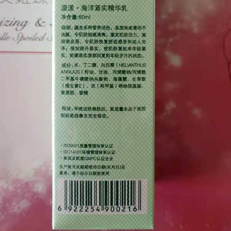 • 商品名称:源漾 海胜肽精华乳60ml(海洋紧实精华乳)含多种营养成份、细腻清爽、提升紧实、重塑轮廓