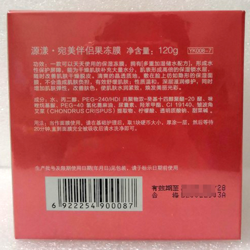 • 商品名称:源漾 宛美伴侣果冻膜120g 抗氧保湿、舒缓润肤、细嫩紧致、提亮肤色、晒后修复