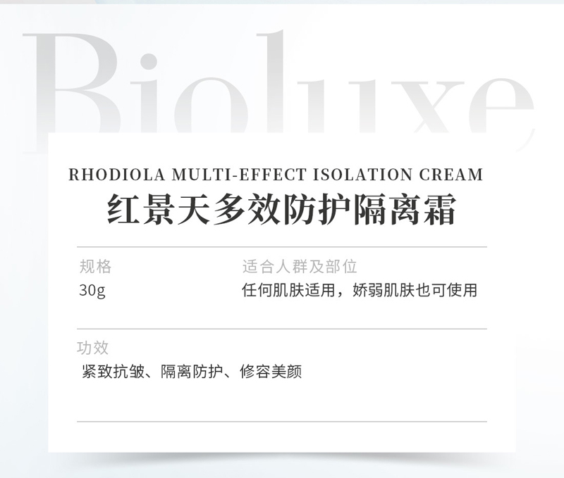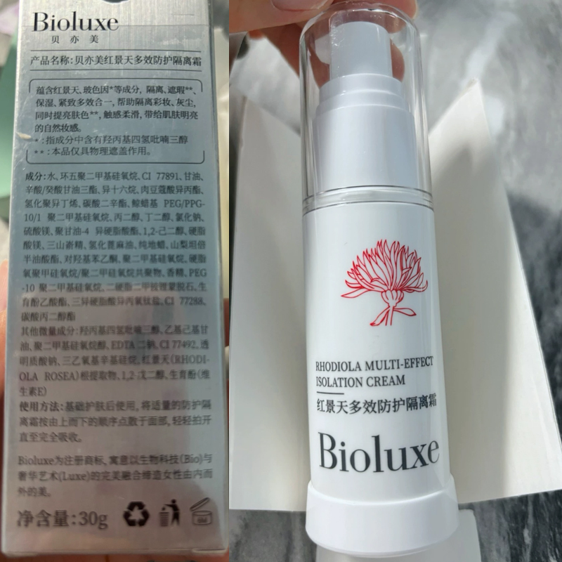 • 商品名称:BIOLUXE红景天多效防护隔离霜30gSPF30+防晒隔离/遮瑕修颜/保湿紧致、隔离彩妆/灰尘、提亮肤色