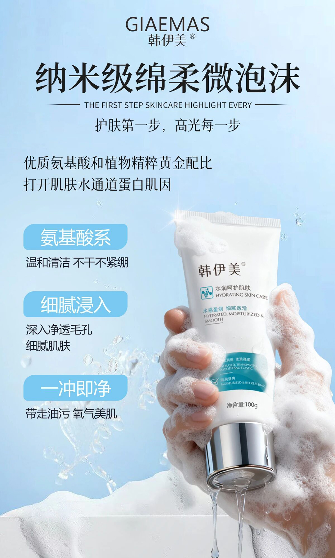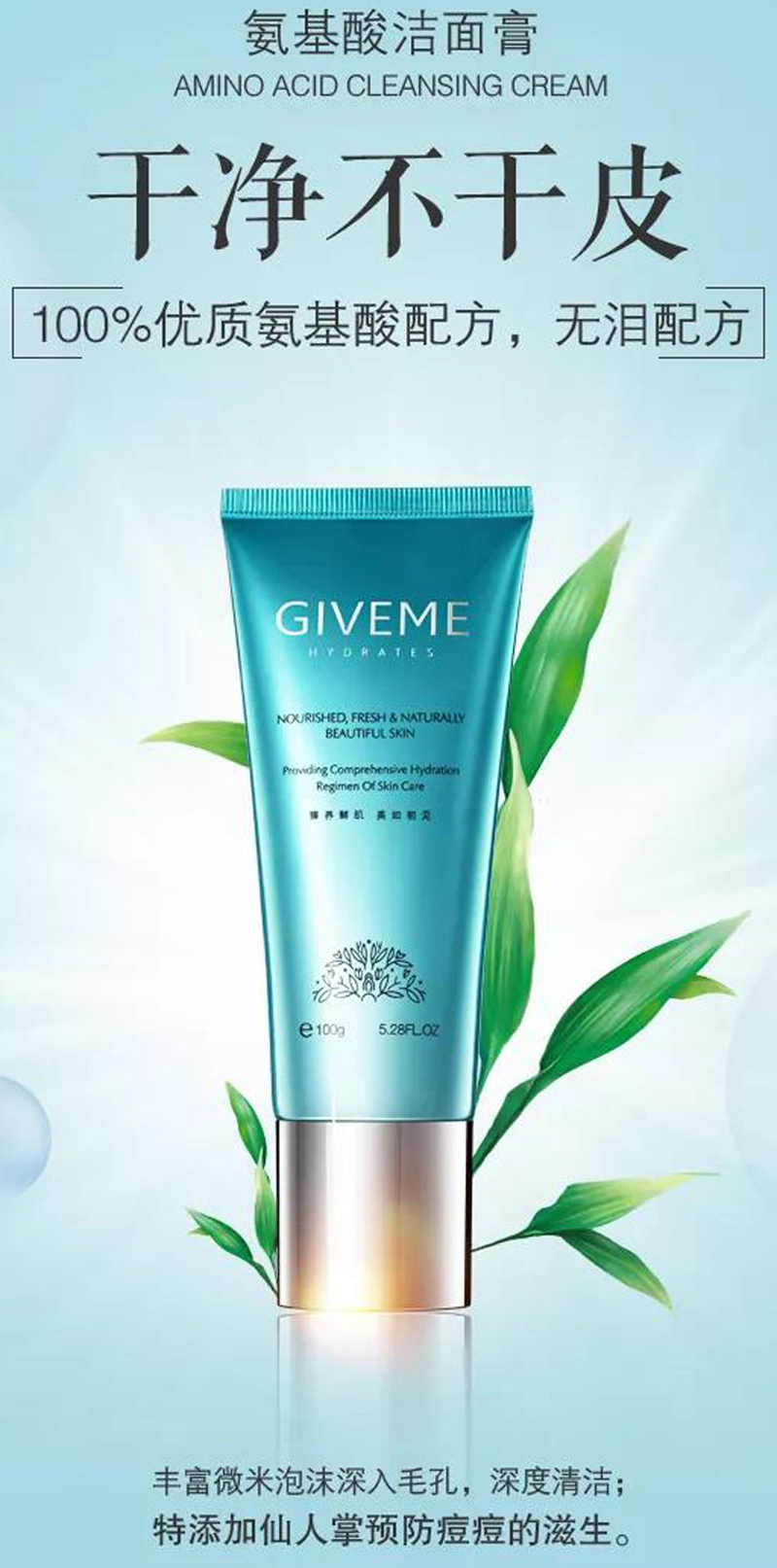 1.柔嫩水润——100%氨基酸配方,超温和弱酸性,睁眼清洗不刺激,不伤皮脂膜不紧绷,清洁后的皮肤干净不干燥;