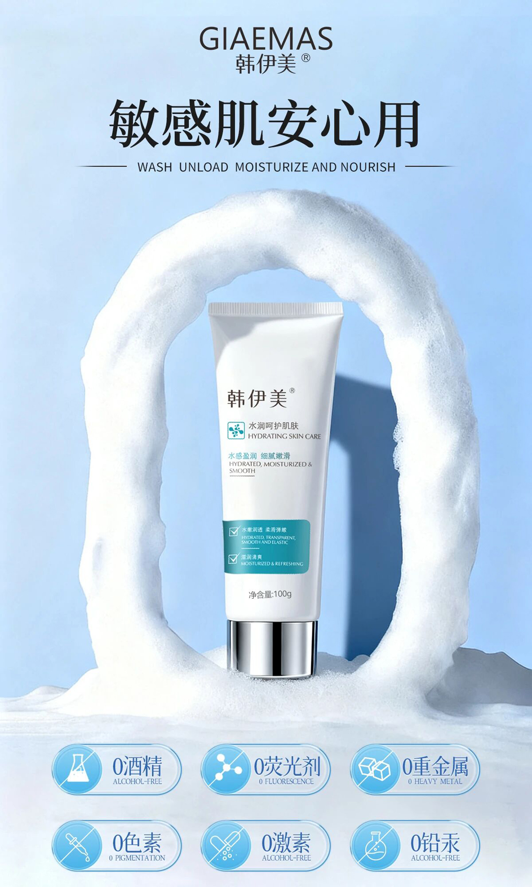 轻柔清洁肌肤油脂、污垢、彩妆残留清润不紧绷、用后肌肤尽显清爽透亮柔润光滑