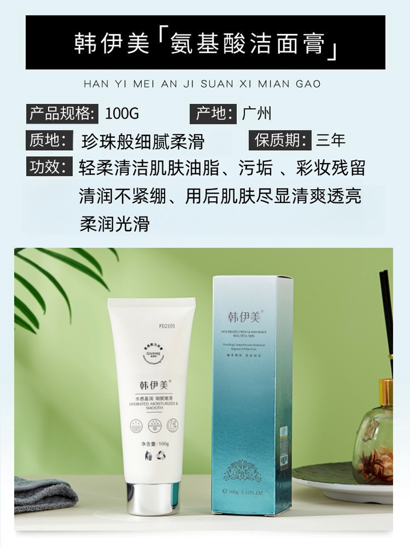 • 商品名称:韩伊美 氨基酸洁面膏100g 温和清洁肌肤油脂/污垢/残妆、清润不紧绷、柔润光滑、敏肌可用